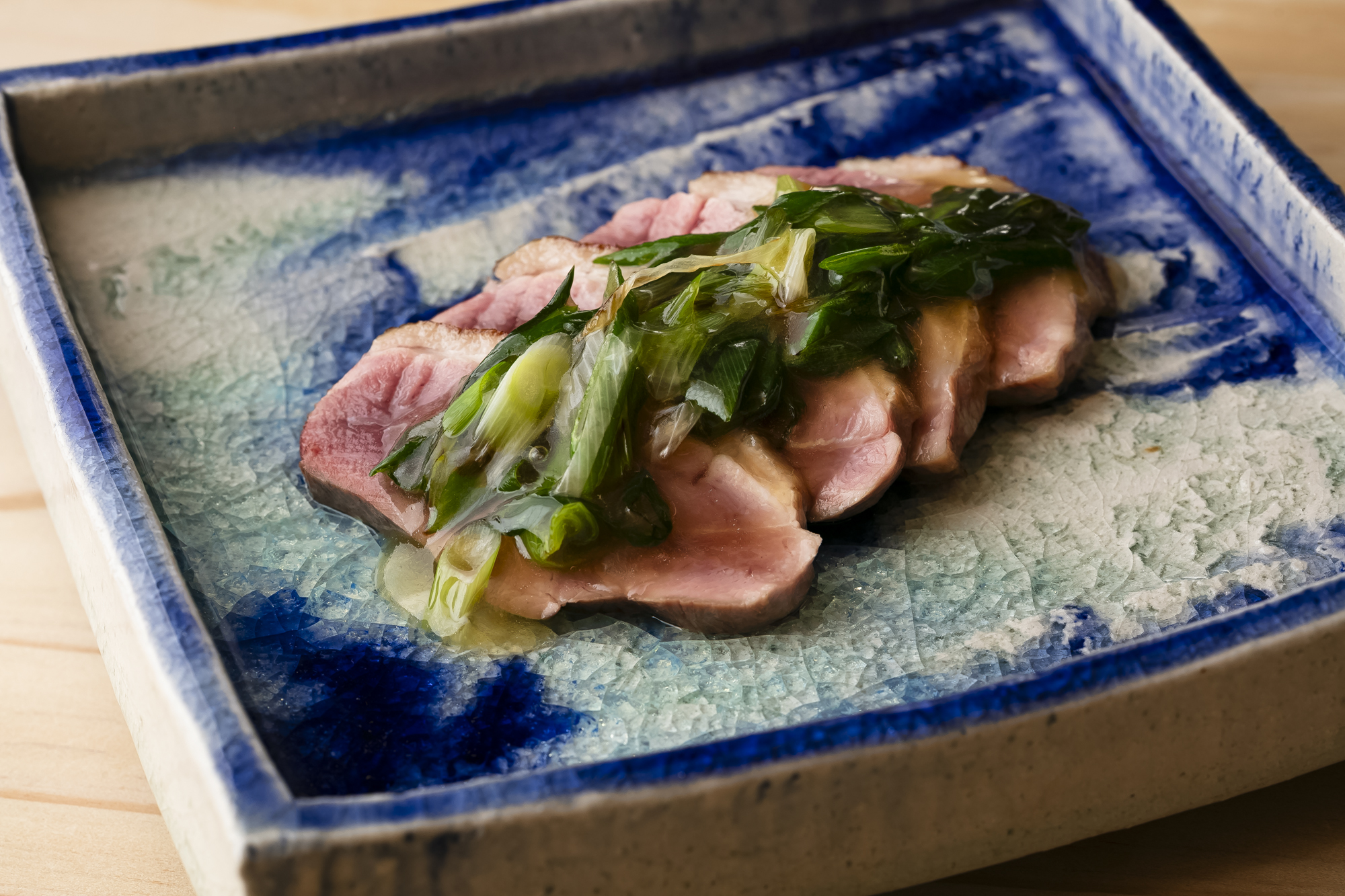 料理は「鴨の太香胡麻油焼き 九条葱あん」である。